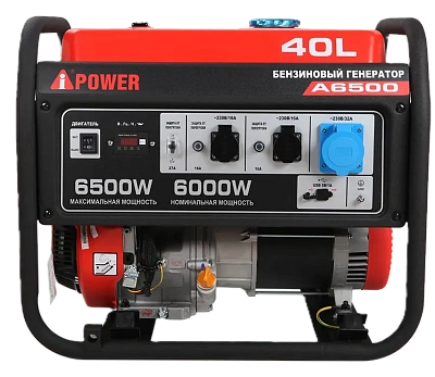Бензиновый генератор A-iPower A6500 с ручным запуском, 6кВт, 230В (20108)