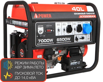 Генератор A-iPower A7000EAX выдерживает кратковременную пусковую нагрузку до 15 кВа