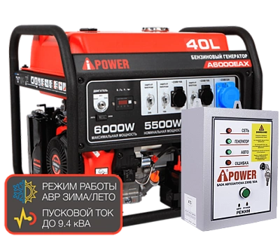 Бензиновый генератор A-iPower A6000EAX с блоком автозапуска A-iPower 230В, 50А