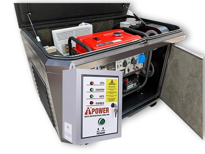 - Резервный однофазный (230В) источник электропитания, максимальная мощность 3.5 кВт, номинальная мощность 3.0 кВт.