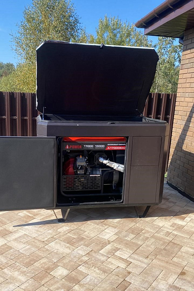 Это автономная конструкция, которая может быть расположена почти в любой точке вашего участка и имеет всё необходимое для стабильной работы вашего генератора.