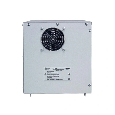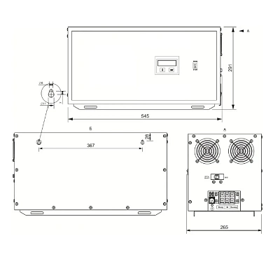 Однофазный стабилизатор Лидер PS7500W-30 выполнен в металлическом корпусе прямоугольной формы. На лицевой части дисплей, в правой стенке утоплена клеммная колодка для подключения силового кабеля. Есть возможность монтажа стабилизатора на стену, для этих целей на задней стенке имеются технологические отверстия.