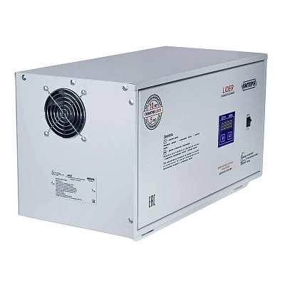 Однофазный стабилизатор Lider PS7500W-30 (Лидер PS 7500W-30) полностью автономен, не нуждается в обслуживании, очень низкий уровень шума, т.к. не имеет реле, сервопривода и других механических деталей подверженных износу. Отличительной чертой является скорость реакции стабилизатора на скачки напряжения (250 в/с). Несколько степеней защиты предотвратят выход из строя стабилизатора из-за перегрузки или короткого замыкания, также стабилизатор отключится при перегреве и не пропустит к подключенным потребителям низкое или высокое напряжение. На лицевой части стабилизатора находится информационный дисплей, для просмотра основных параметров работы, таких как мощность подключенной нагрузки, входное или выходное напряжение. В ручном режиме с помощью меню можно изменять выходное напряжение от 210 до 230 В. Стабилизатор снабжен энергонезависимой памятью, в которую записываются последние 32 нештатных отключения стабилизатора, что позволяет диагностировать причины отключений в ваше отсутствие. Важным моментом является автозапуск стабилизатора при отключении и возобновлении подачи электроэнергии.