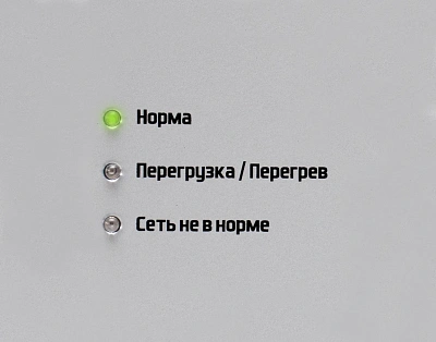 На стабилизаторе есть три лампочки, которые сообщают нам, что с ним происходит. Первый индикатор под названием «Нормальный» загорается, когда все работает нормально. Второй индикатор «Перегрев/перегрузка» загорается, если стабилизатор перегревается или к нему подключено слишком много устройств. Третий индикатор под названием «Сеть не в норме» загорается, если мощность в сетевой розетке слишком низкая или слишком высокая.